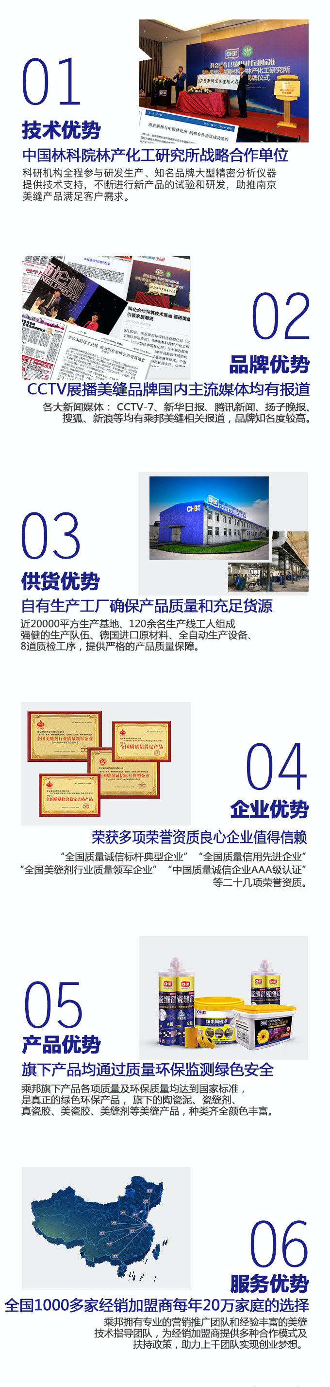 南京乘邦環(huán)保科技有限公司成立于2005年,是集南京瓷磚美縫南京美縫施工、高科技產(chǎn)品的研發(fā)與銷&售等產(chǎn)業(yè)的南京瓷磚美縫公司。目前公司主打美縫產(chǎn)品為國(guó)內(nèi)推出的傳統(tǒng)美縫劑升級(jí)產(chǎn)品:乘邦納米陶瓷泥、水性環(huán)氧彩砂,天然砂質(zhì)顏料,化妝品般安全無污染。乘邦陶瓷泥顏色豐富,大大提升裝飾效果,打造魔幻家居,讓家也可以炫酷起來。它綠色環(huán)保防霉防污,堅(jiān)硬如瓷細(xì)膩光潔,不僅做到瓷磚縫隙“不變黑”,而且在為每一個(gè)家庭健康美麗而努力,這是乘邦公司的最高準(zhǔn)則,也是乘邦人為之努力奮斗的目標(biāo),以此目標(biāo)乘邦本著"誠(chéng)信、合作、專業(yè)、超越"的理念,詮釋優(yōu)質(zhì)服務(wù),演繹品質(zhì)生活。同時(shí)公司擁有一支管理完善、經(jīng)驗(yàn)豐富的專業(yè)美縫施工隊(duì)伍。在南京瓷磚美縫價(jià)格方面也有很大的優(yōu)勢(shì),每年為南京近萬家庭提供美縫服務(wù),其自主研發(fā)的乘邦牌產(chǎn)品在10余省市已有近千個(gè)代理商,在全國(guó)范圍內(nèi)享有很高的知名度。